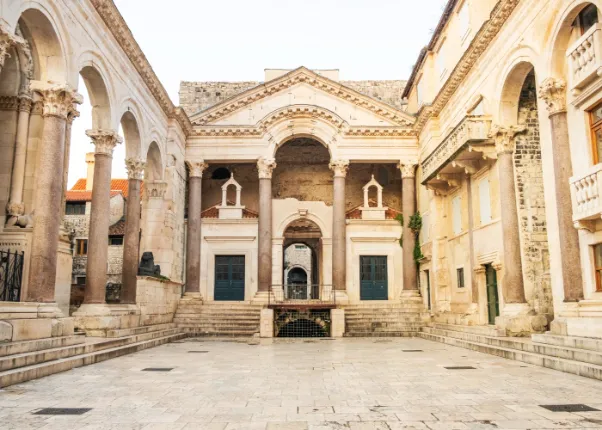 海岸城市斯普利特,是克羅埃西亞的第二大城,呈現濃厚的古羅馬風格,前往▲由皇陵改建而成的聖多米努斯教堂、古老的★戴奥克里齊安宮殿遺址的▲金、銀、銅、鐵門,探索羅馬時代遺跡和皇帝陵寢,據說摸到護城主教的金腳趾,可為您帶來好運!