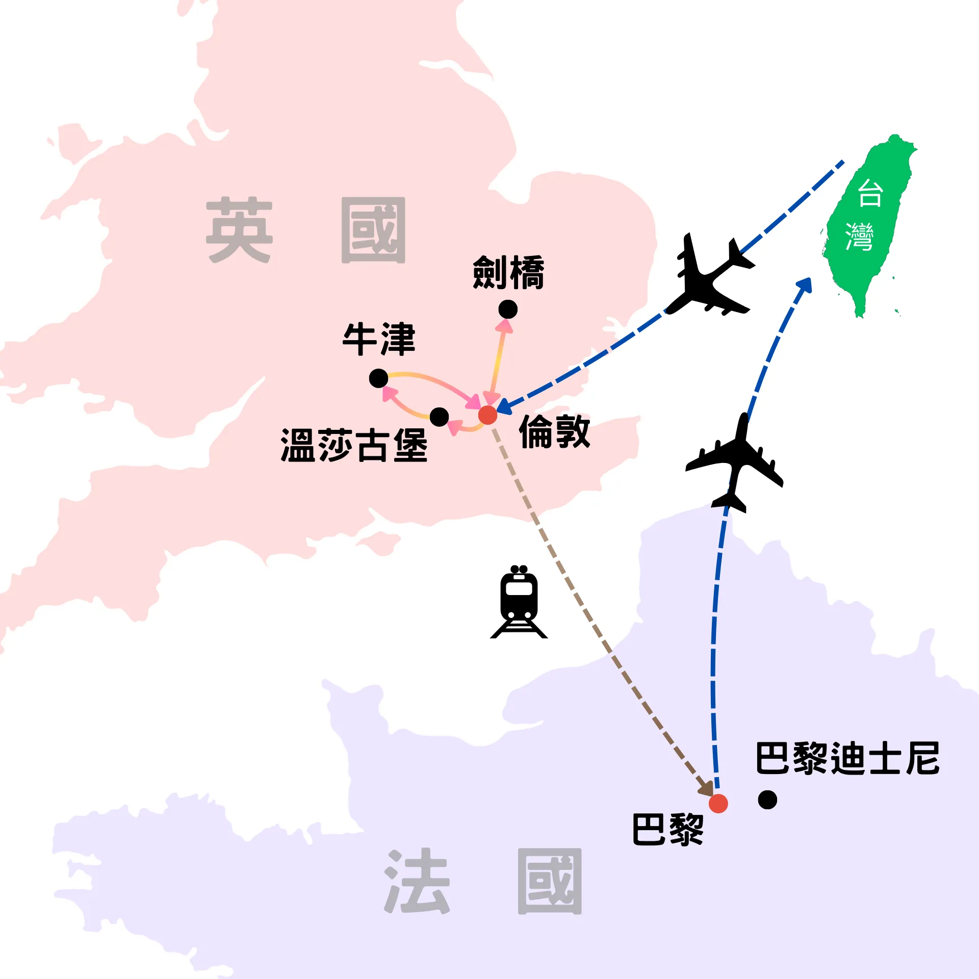 【參考行車距離】倫敦+歐洲之星+巴黎-6km-巴黎鐵塔、凱旋門-7km-飯店