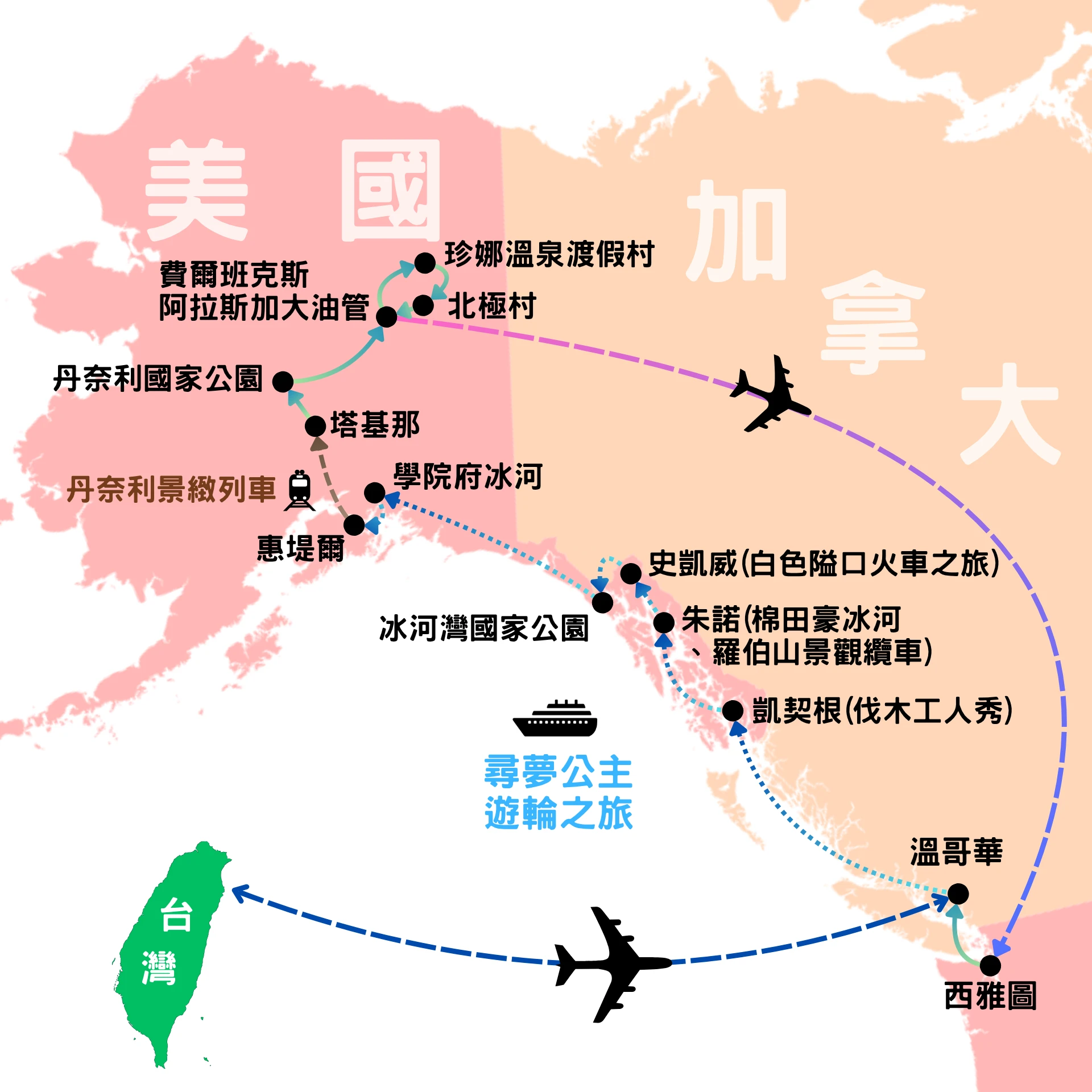 今晚於桃園機場集合,帶著愉快放鬆的心情,飛往美洲!